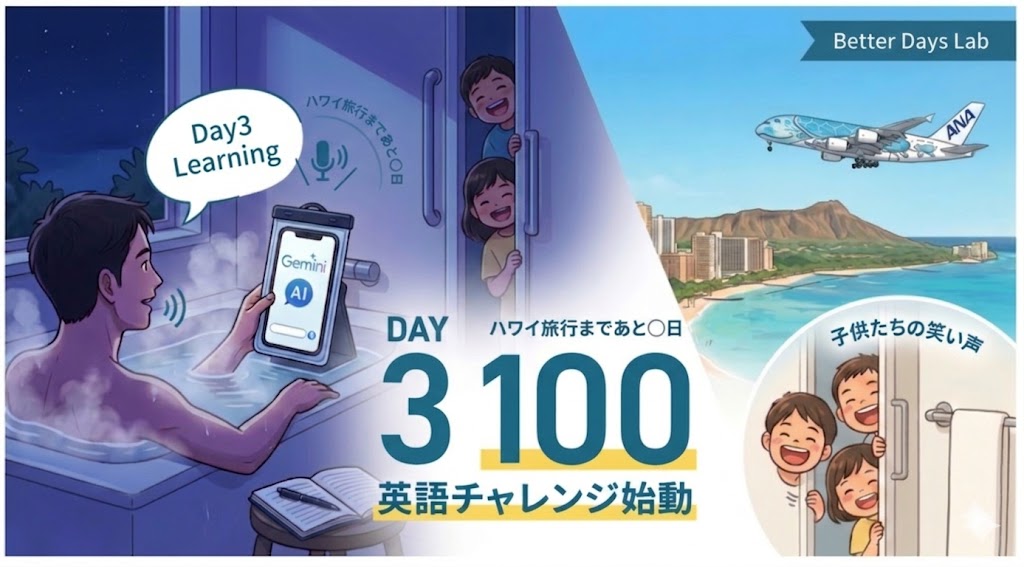 - この挑戦の背景(0日目)はこちら:【Day 0】3児のパパ、AIを相棒にハワイを目指す。