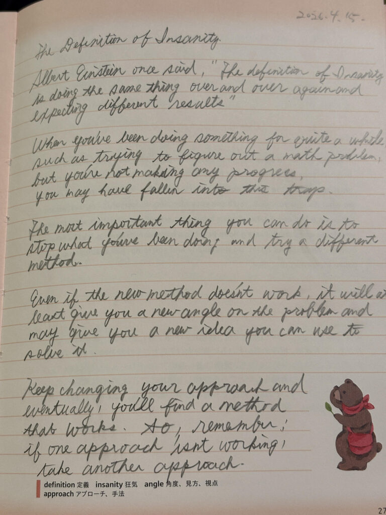 “The most important thing you can do is to stop what you’ve been doing and try a different method.” (あなたができる最も重要なことは、これまでやってきたことをやめ、別の方法を試すことだ。)